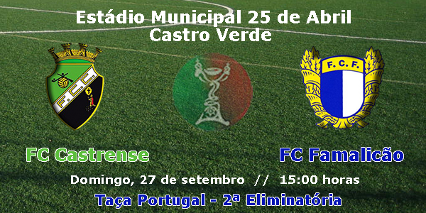 No próximo domingo, dia 27 de setembro, o FC Famalicão vai de abalada até Castro Verde para defrontar o FC Castrense. Este encontro refere-se à 2ª eliminatória da Taça de Portugal e realiza-se no Estádio Municipal 25 de Abril pelas 15 horas.