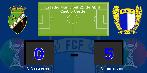 O FC Famalicão fez uma partida muito personalizada e não deu veleidades ao Castrense e venceu a partida por cinco a zero.